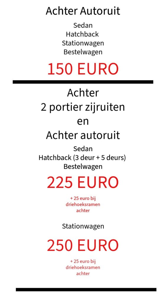 *Gelieve de voertuig altijd proper binnen te brengen voor tinting, vuile staat van de voertuig kan extra kosten mee brengen of weigering te plaatsen van tinting. Schoon voertuig is vereist om de kwaliteit te garanderen en een goede verbinding van de folie.